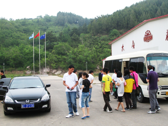兴趣高昂的年轻人称两辆中巴车首先参观怀柔区桥梓镇北宅村的大唐庄园饮品有限公司生产基地,观看公司宣传片;农家午餐后到雁栖湖国家会议中心。下午16点安全返回市区。
