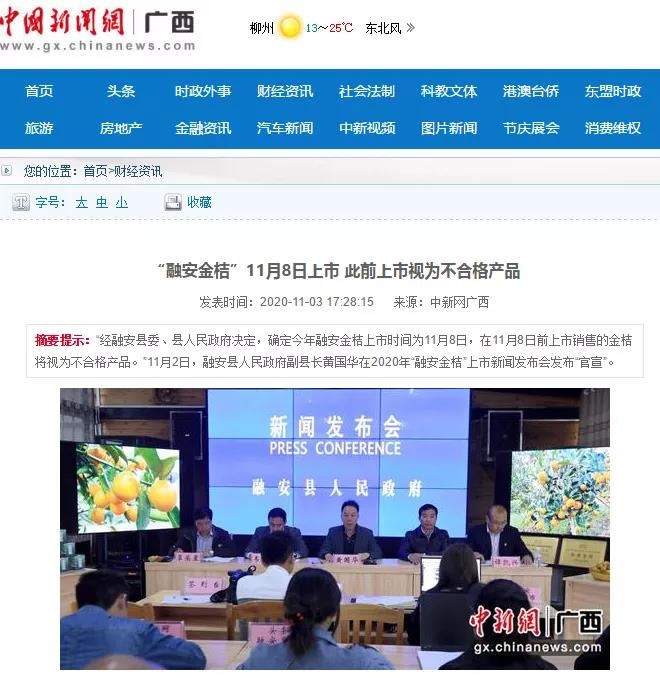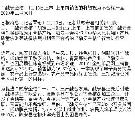 【媒体视点】融安金桔于11月8日正式上市!
