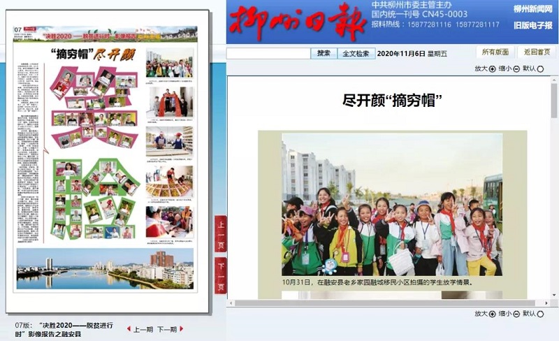 今年是脱贫攻坚战的收官之年。从5月开始,融安县融媒体中心精心策划,将20多名工作人员分成3个组,前往全县所有的贫困村,历时一个多月,拍摄了300多名建档立卡贫困户、驻村第一书记和工作队员、驻村干部、帮扶干部的幸福笑脸。《柳州日报》、柳州1号APP均以《尽开颜“摘穷帽”》为题报道了相关新闻。
