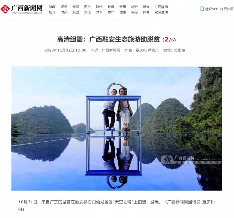 “2019年我们又推出‘天空之镜’,成了广西首选网红拍照地之一。”10月31日,在广西融安县石门仙湖景区,经理卢铁军向来自广东湛江的游客介绍说。广西新闻网以《高清组图:广西融安生态旅游助脱贫》为题报道了相关新闻。