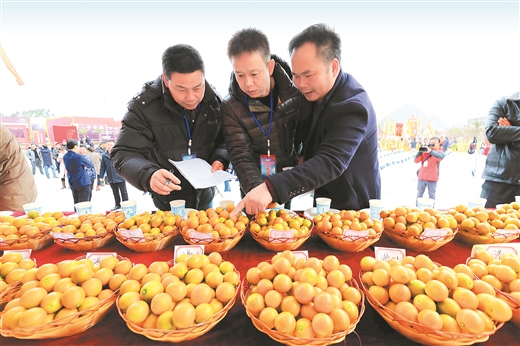 “我是融安金桔王”擂台赛是活动的一大热点,全县金桔种植户共选出脆蜜金桔30户、滑皮金桔30户和油皮金桔30户参加本次擂台赛,参赛的金桔品种分为脆蜜金桔、滑皮金桔和油皮金桔。比赛通过对金桔果品的大小、颜色、形状、含糖量等进行综合测评。