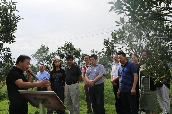 8月21日,在融安县金桔苗木培育基地,融安金桔地理标志运用促进工程项目调研组了解金桔产业发展情况。