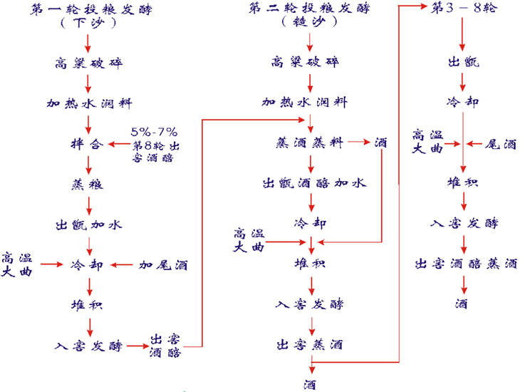 酿造时令——酿酒讲究“天时”,一瓶高品质的茅台镇酱香白酒必须遵循“端午踩曲、重阳下沙”的时令规律,只有在不同的时令对应不同的酿造环节,才能酿造出真正意义上的好酒。