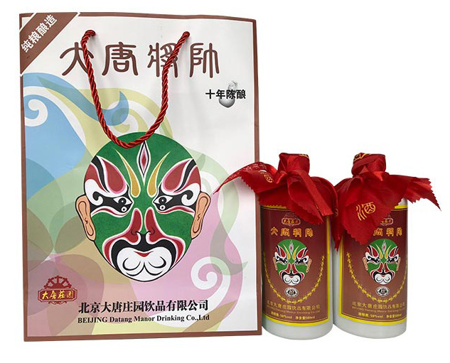 京剧花脸:京剧为唐朝大将程咬金,演员为京剧大师袁世海所扮。取意“半路杀出程咬金”,《大唐将校》商标为大唐庄园版权。共享“大唐”为民族的英雄和民族品牌。